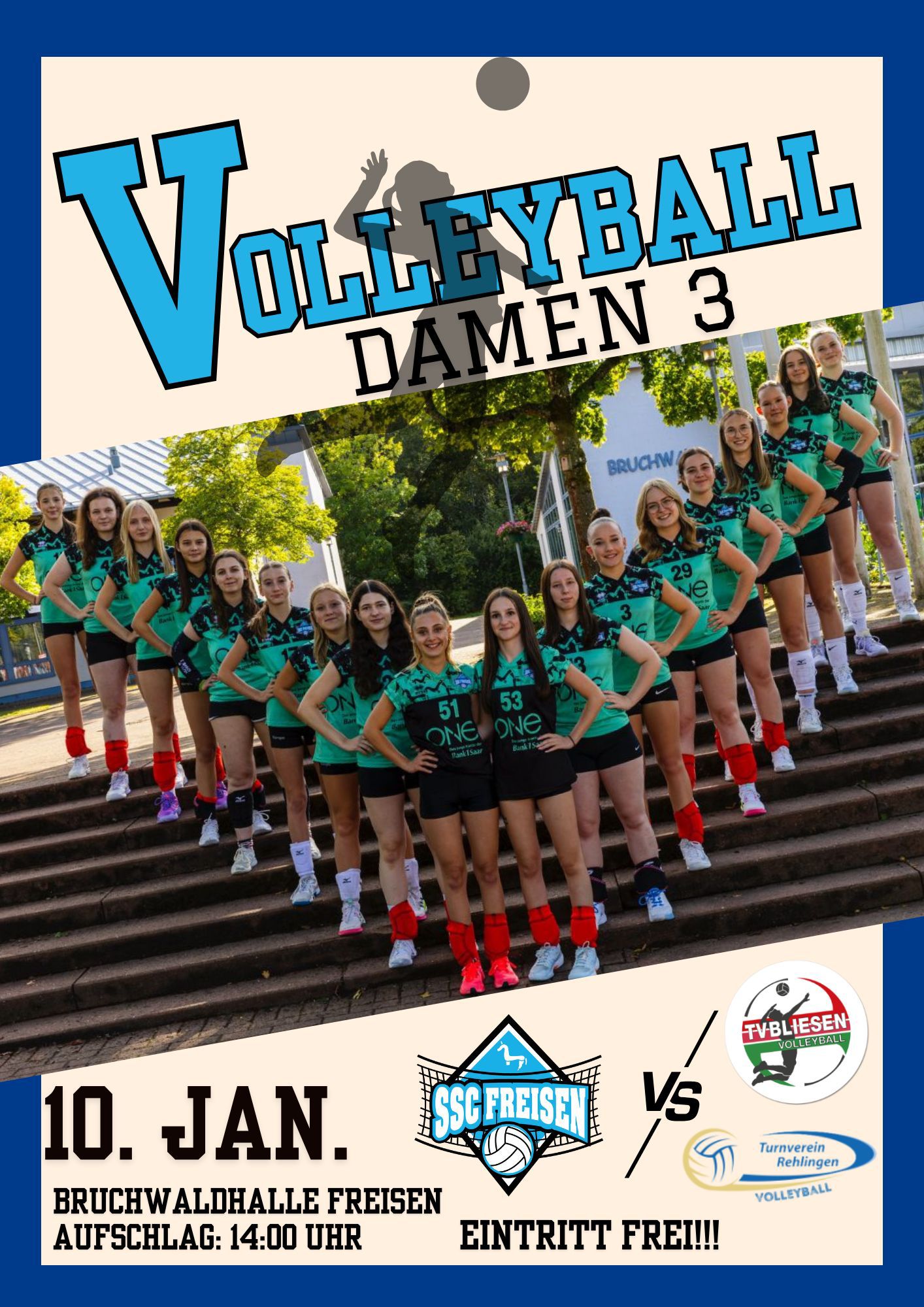 Den Auftakt machen ab 14:00 Uhr die Damen III mit einem Doppelspieltag. Hierbei bekommt es der bis dato ungeschlagene Tabellenführer SSC Freisen zunächst mit dem Tabellensechsten TV Rehlingen II zu tun, ehe es im Anschluss zum Aufeinandertreffen mit dem auf Platz drei in Schlagdistanz liegenden TV Bliesen kommt. Das junge Team von Leonie Dewes, gecoacht von Philipp Heß hat die Erwartungen bisher mehr als erfüllt und kann ohne Druck in die beiden Partien gehen.